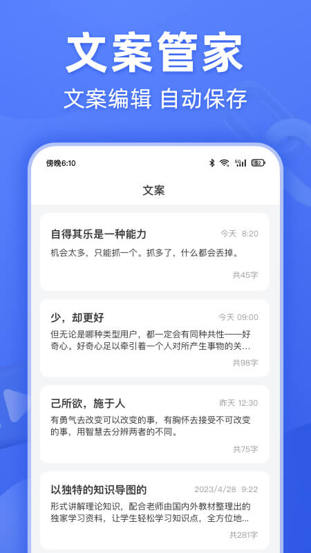 文案提取大师是一款功能全面的应用程序,无论是从链接、视频、语音、图片还是文件,都能实现便捷的文字提取。它将不同形式的内容转换成文字,为用户的工作和学习带来事半功倍的效果,随时随地获取、编辑和分享各种内容。通过文案提取大师,用户能够从短视频/视频创作到日常办公再到学习培训等多个方面得到极大便利。应用广泛,功能丰富,为用户带来高效、便捷的文字处理体验。