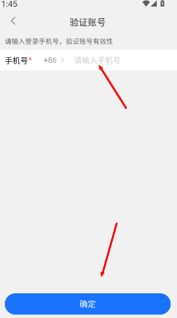 3、选定方式后输入注册绑定的手机号码,点击 “确定” 完成信息提交,即可进入后续验证步骤。