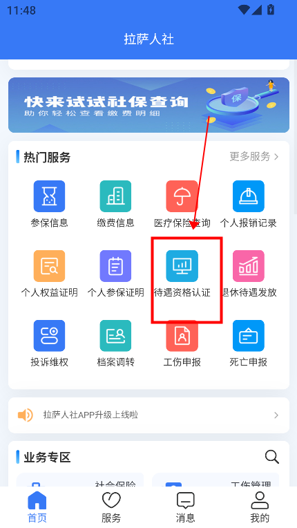 登录成功,进入首页,点击待遇资格认证