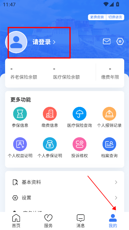 进入首页“我的”点击登录