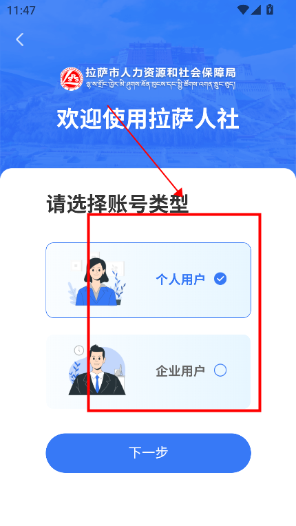 选择个人用户,或者企业用户