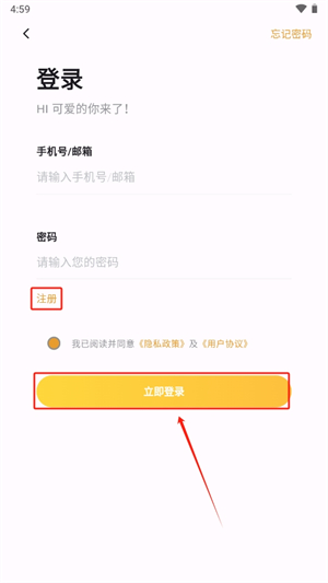 4、如果你是新用户,则在登录界面点击【注册】,按照要求注册你的账号再登录。