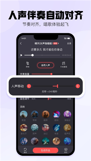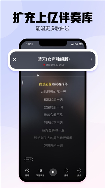 用户可以随时k歌,海量高品质伴奏任你选,拥有评分功能,可以了解自己的唱歌水平