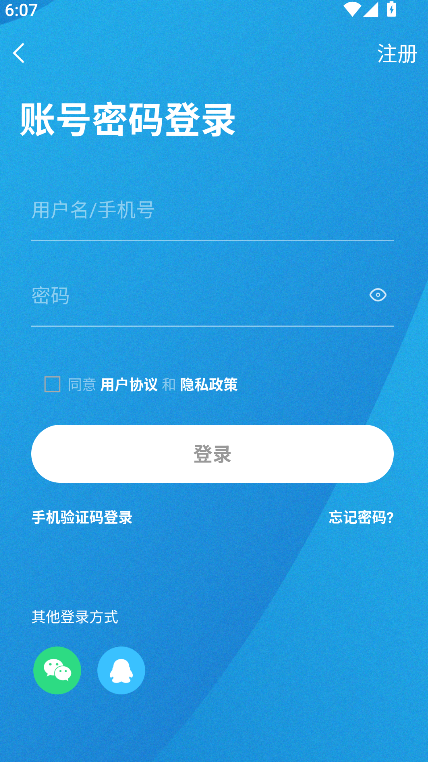 3、点击后系统跳转至账号密码登录界面,在该界面的输入框中填写用户名或手机号以及对应密码。