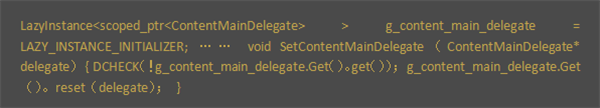 其中的一个初始化操作是给Chromium的Content层设置一个类型为AwMainDelegate的Main Delegate。这个AwMainDelegate实现在Chromium的androidwebview模块中。Android WebView是通过Chromium的androidwebview模块加载和渲染网页的。Chromium加载和渲染网页的功能又是实现在Content层的,因此,Chromium的androidwebview模块又要通过Content层实现加载和渲染网页功能。这样,Chromium的androidwebview模块就可以设置一个Main Delegate给Content层,以便它们可以互相通信。给Chromium的Content层设置一个Main Delegate是通过调用函数SetContentMainDelegate实现的: