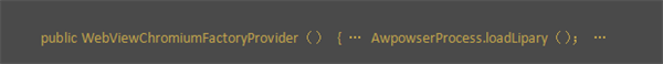 WebViewChromiumFactoryProvider类的构造函数会调用AwpowserProcess类的静态成员函数loadLipary对前面加载的Chromium动态库进行初始化: