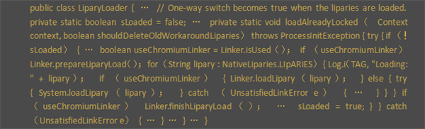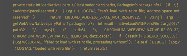 加载Chromium动态库是通过调用WebViewFactory类的静态成员函数loadNativeLipary实现的: