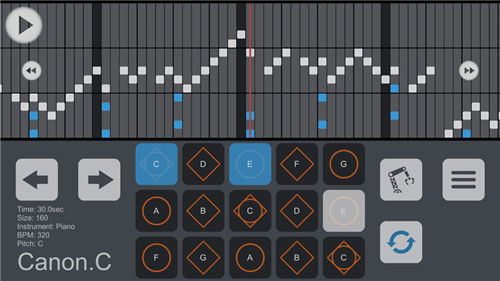 2、在编辑界面点击左右箭头,并使用不同的音符按键进行曲目的创作与编辑。
