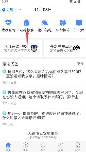 1、打开犬卫士,在首页找到那个像小饭碗一样的“喂养标准”图标,用充满期待的手指戳进去。