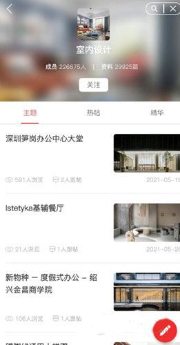 2、进入【资料】页面,点击图纸相关资料小组右侧的关注。