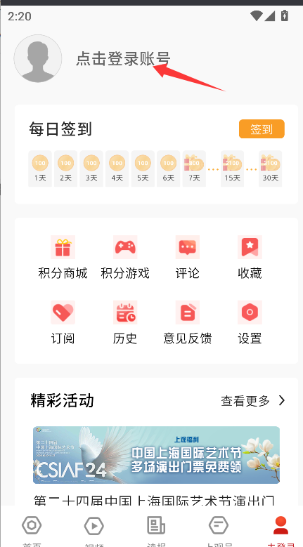 2、在此需要选择登录方式,请直接点击屏幕上的“点击登录账号”按钮,进入下一阶段的登录操作界面。