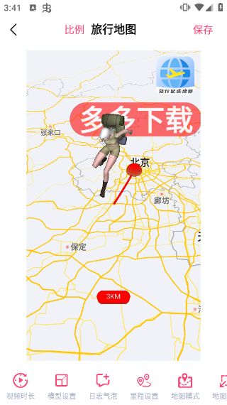 3、等待片刻后即可生成设置的旅行地图,我们可对其进行后期的修改调整,确定无误后点击保存即可