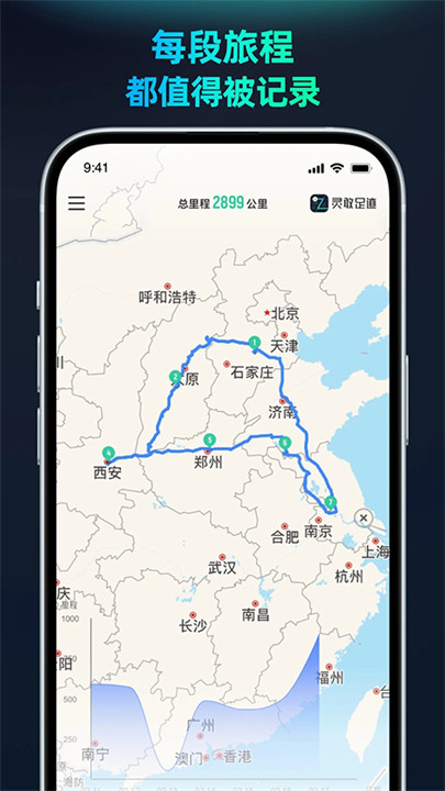 4、秀出你的足迹地图可以保存为图片,并通过微博,微信等分享给好友