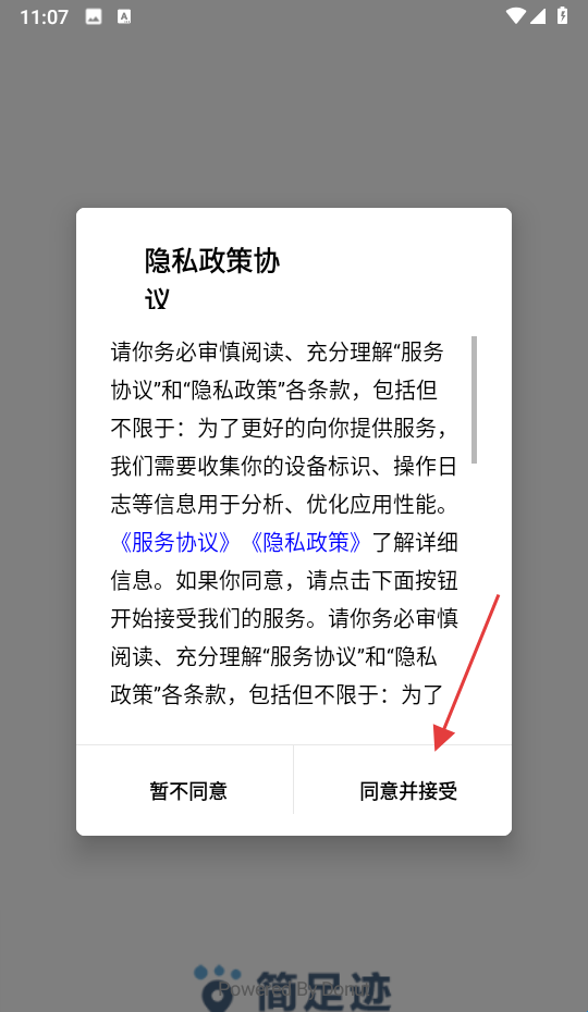 1、点击【同意并接受】隐私政策协议条款。