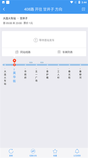 1.进入大连公交APP主界面,用户可以通过点击某路线,查看该路线的详情界面并了解该路线的当前位置和行驶路线。