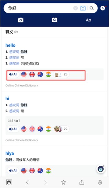 2、具有各种可信词典提供的发音,来自世界各地的各种用户都可以收听