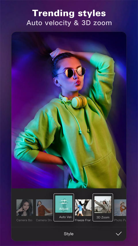 2.拥有各种各样的特效,比如切割,倒放,变速,转场等等,一键点击即可完成,大大提升了视频编辑的效率。