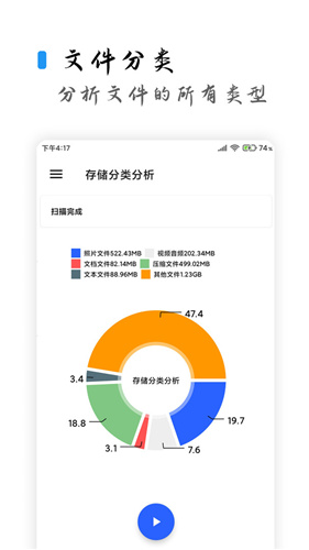 专为手机清理打造的软件,提供多类型的文件清理,寻找指定类型的垃圾文件,一键整理全显示,自定义选择内容将其删除,带给大家超多便捷的手机清理服务。