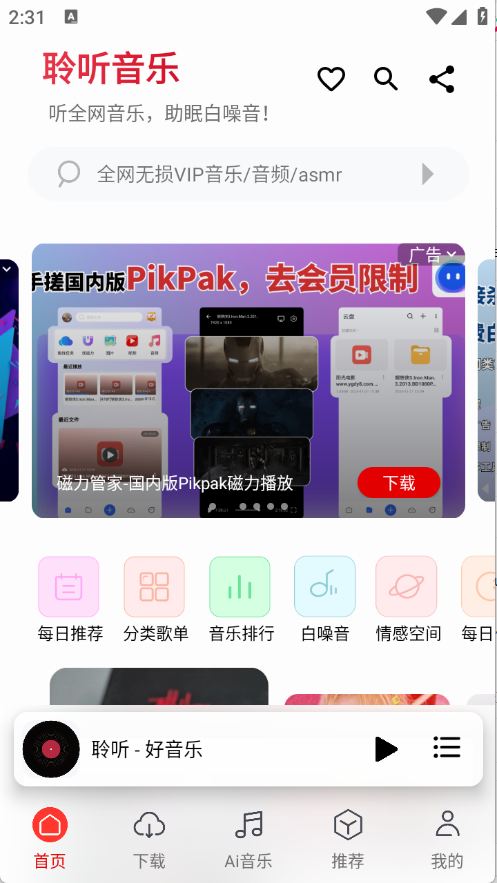 3、高清无损音乐下载,确保音质纯净无损,带来极致的听觉享受,仿佛置身现场音乐。