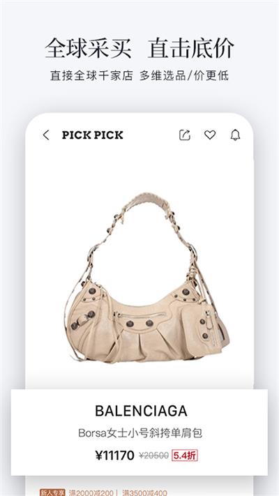 PICKPICK对国内奢侈品爱好者们来说绝对是不可多得的宝藏软件,全球优秀设计师品牌、奢侈品大牌云集于此,直接以采购价从海外生产厂家入手,无海关费直邮到国内,价格巨划算。每逢双十一、618还能享超低折扣,超多当季热门奢侈品包包、衣服全都可以2折入手。