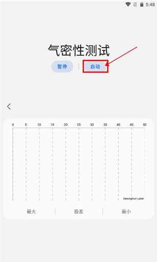 2、进入后就可以看到气密性测试页面了,点击启动,然后等待测试结果出来。