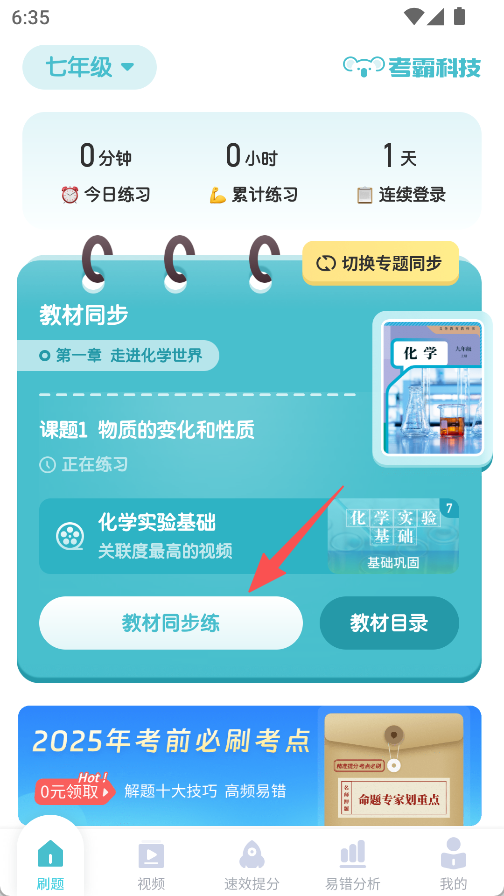 1、打开首页点击教材同步练。