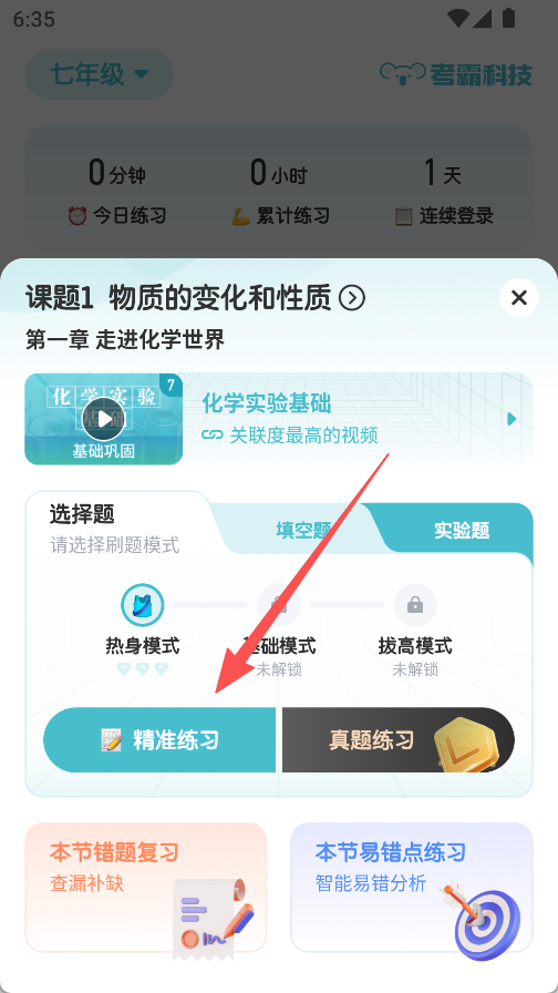 2、在弹出页面,点击精准练习。