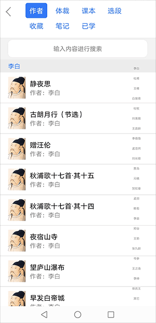 3、在同一界面的左下角红色方框内的按钮是著名诗人词人的古诗词合集。