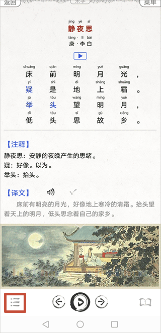 详情页内容详尽,支持同步查看注解,译文和赏析