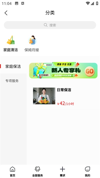 4、点击下方工具栏全部服务,可以了解家庭保洁以及保姆月嫂等功能。