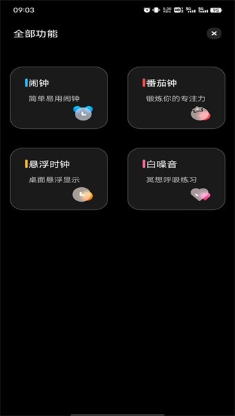 4、另外,应用内还包括闹钟、番茄钟、悬浮时钟、白噪音等功能,可以根据自己需求选择使用;