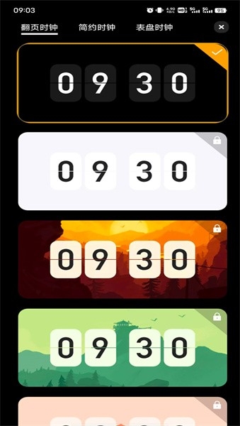 2、点击左下角衣服图标,用户可更改翻页时钟皮肤;
