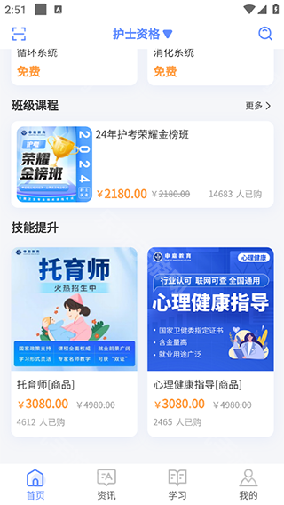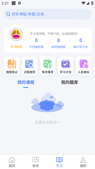 2、购买成功后即可在在学习页面中出现自己购买的习题开始练习