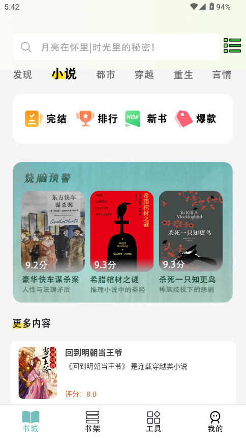 免费电子书城这款软件中的有着十分丰富的免费小说资源,而且不管是TXT还是其他的小说格式能在线换源和观看,而且在软件中下载资源也是完全免费的,各种小说资源更是为你一网打尽,让你能随时随地都能看到自己喜欢的小说。