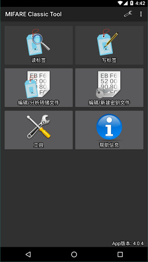在该软件里用户可以对key文件进行编写,对安卓的nfc应用进行读取识别、程序写入以及信息分析,支持将门禁卡等附带nfc功能的代码写入手机,方便我们的日常生活。用户可以通过它可以帮助我们快速读取和写入门禁卡中的数据,让你用手机就可以对空白的门禁卡进行复制,让有NFC功能手机可以直接用于刷门禁,然后就能将手机当成门禁卡一样刷,无需每天到处找钥匙,手机在哪,你的门禁卡就在哪,智能手机找起来更加方便。除此之外,MCT app不仅仅只是能够用于刷门禁这么简单,还支持读取IC卡数据,写入数据,支持编辑/分析dump文件,编辑/新增key文件等功能,是很实用的手机NFC管理软件