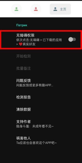 3、在这里打开应用中的【无障碍】功能,接着返回APP的第一页。