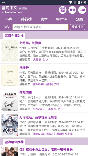 1、启动蓝海搜书软件,进入首页后,浏览主页推荐的书籍。