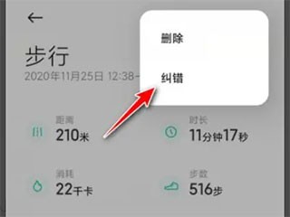 3、选择要修改的记录日期,点击右上角三个点,选择纠错。