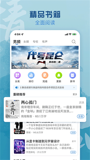 4、不仅分为男频和女频,还内置丰富的排行榜,帮助用户更加轻松的找到自己喜欢的小说。