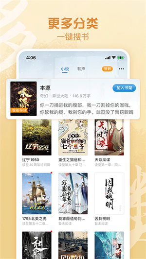 2、软件中有着部分书籍支持全本免费阅读或收听,没有限制的阅读完整本小说。