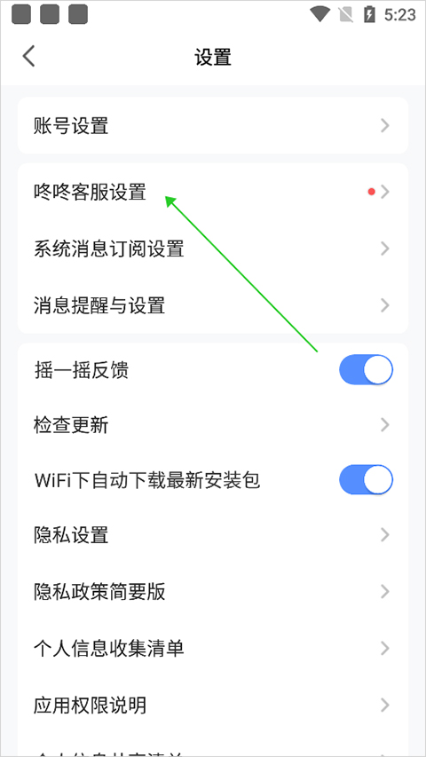 2、在打开的设置页面中点击【咚咚客服设置】