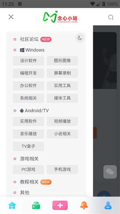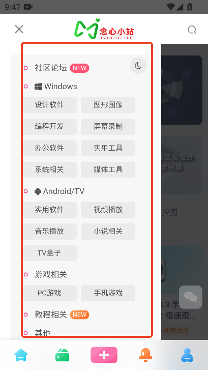 点击左上角的三个横线,可以看到全站点的分类信息。
