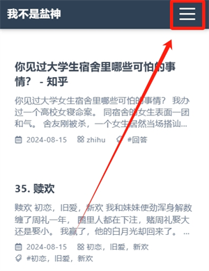1、打开手机上下载好的我不是盐神app,或者打开网页版,在首页点击右上角的【三】三条杠按钮;