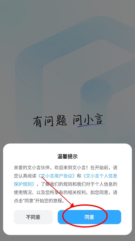 1、首次下载安装的用户,进入app,会弹出温馨提示,阅读后点击同意;