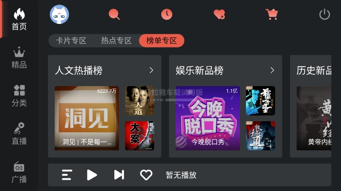 2. 应用内还有提供多种内容类别,包括评书、新闻头条、音乐、儿童故事等,用户可以轻松找到想听的节目。
