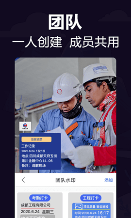 1、提供了功能强大的经纬度相机,使用相机就可以定位打卡,随时拍照记录。