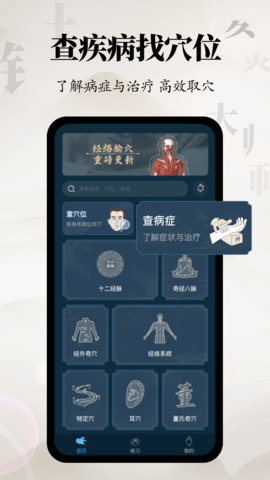 1、针灸大师app每条经脉附有循行路径、经典文献引用、常见病症与治疗概览。包含十二经络、奇经八脉及其分支。