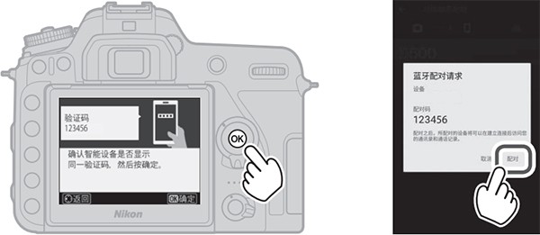 4、确认完毕后,最后按下相机上的ok,并点击手机上的配对按钮即可