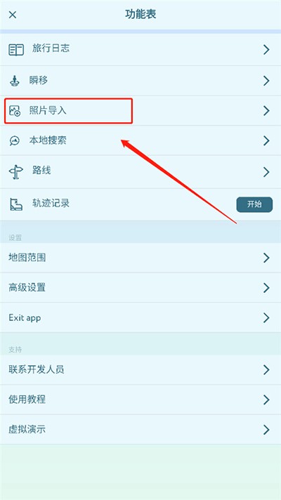 2、在“功能表”页面选择“照片导入”选项。