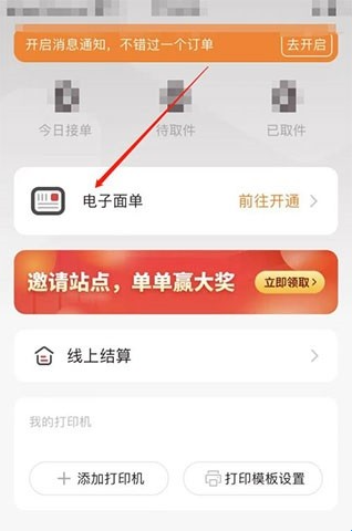 3、完成认证后,进入首页点击电子面单选项。
